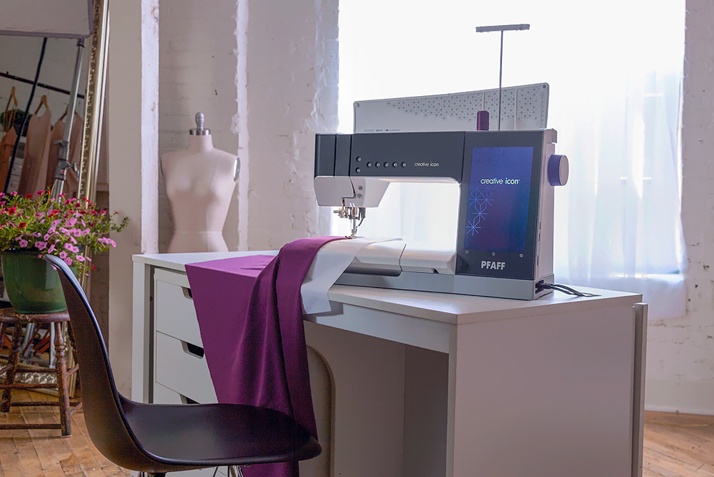 Рабочая поверхность в машине Pfaff Creative Icon позволяет с легкостью работать с большими и объемными изделиями, т.е., к примеру верхней одеждой, покрывалами и одеялами. Расстояние справа от иглы 31 см, высота 14 см!