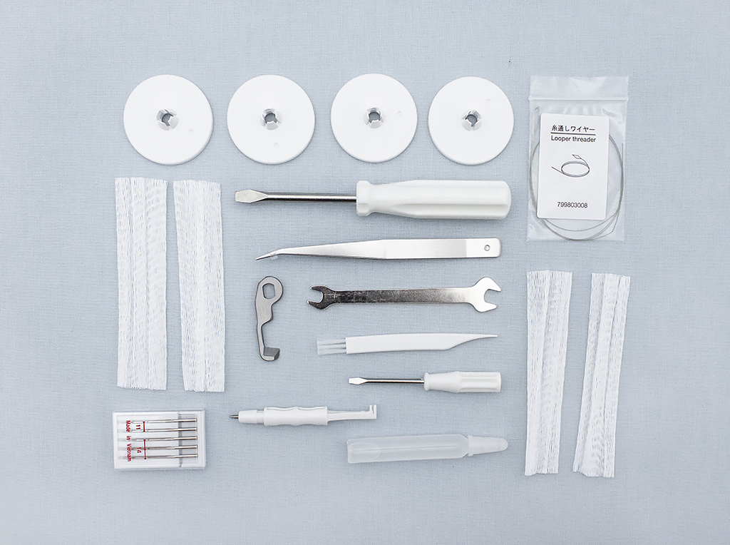 Уникальность этой модели заключается в воздушном способе заправке обоих петлителей. Просто пропустите нить в специальное отверстие и нажмите рычаг. Поток воздуха направит нить через трубку прямо в отверстие петлителя.