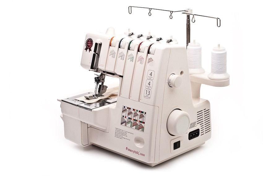 Merrylock 5000 - 5-и ниточный коверлок, более современный аналог модели Merrylock 007. Оверлок + плоскошовная машина. Один из самых популярных оверлоков, сочетающих в себе большое количество функций. Среди его функций стоит отметить регулировку давления лапки на ткань, дифференциал, выполнение распошивального шва.