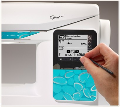 Швейная машина Husqvarna Opal 670. Данная машина обладает современным горизонтальным челночным устройством. У данной модели в арсенале 7 видов петель в автоматическом режиме, более 200 строчек различных видов (оверлочные, декоративные, квилтинговые), алфавит, сенсорный ЖК дисплей, нитевдевающее устройство, позиционирование иглы, 8 ячеек памяти, датчик обрыва нижней нити. Отличительной чертой электронных машин Husqvarna можно смело назвать электронный швейный советник.