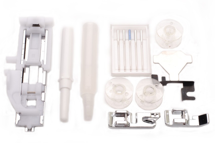 18 видов строчек (19 операций), нитевдевающее устройство, в комплекте 5 лапок, чехол жесткий. Челнок - вертикальный.