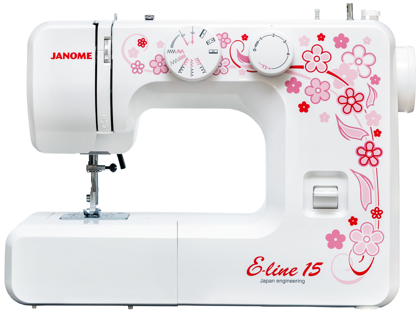 Janome E-Line 15 выполняет 12 видов строчек, в комплекте 4 лапки. Челнок - вертикальный. Janome - идеальные швейные машинки для рукодельниц. Отличительная особенность данной модели - яркий дизайн и надежность. Именно поэтому на Janome E-Line 15 предоставляется гарантия - 3 года!