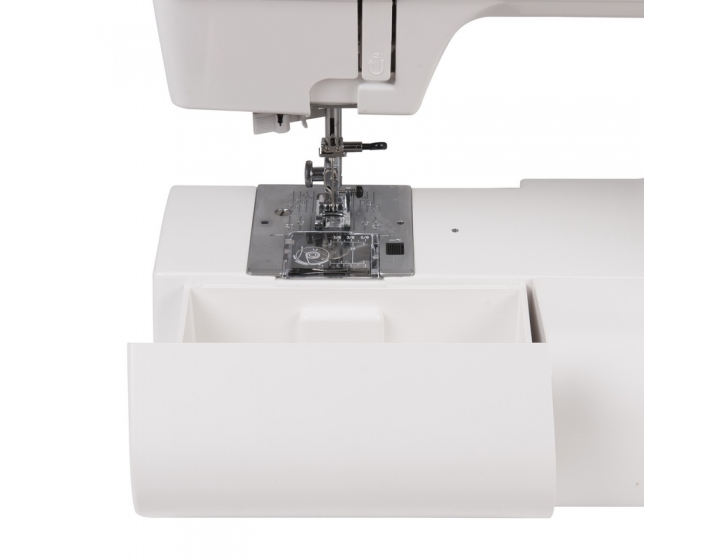 Швейная машина имеет горизонтальное челночное устройство и выполняет 18 строчек. В комплекте содержит  7 лапок, нитевдевающее устройство, а также жесткий чехол.
