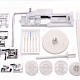 В комплекте Лапка универсальная, Лапка для пришивания молнии, Лапка для выметывания петли-автомат, Оверлочная лапка, Лапка для потайного шва,Лапка подрубочная, Лапка прозрачная для декоративных строчек, Направитель ткани, Набор шпулек., Набор игл, Вспарыватель, Большая отвёртка, Кисточки, Дополнительный катушкодержатель, Держатель для катушки (большой, малый),Фетровая прокладка под катушку, Жесткий чехол