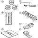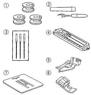 В комплекте Лапка универсальная, лапка для петли полуавтомат, Лапка для невидимой подгибки, Лапка для молнии (одностор.), Набор шпулек (4 шт.), Набор игл, Пластина для штопки, Вспарыватель